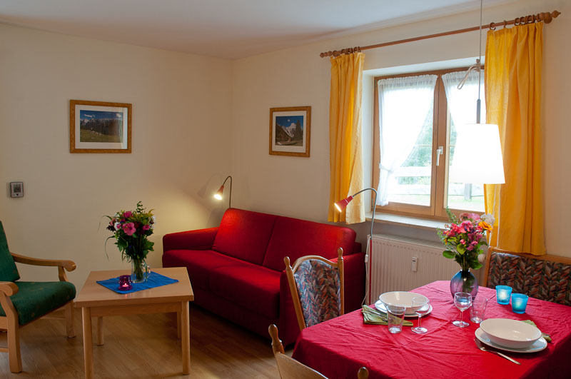Die helle, 37 m² große Einzimmerwohnung bietet ein kombiniertes Wohn-/Schlafzimmer mit einer 200x140 cm großen, bequemen und hochwertigen Schlafcouch für Zwei und einer gemütlichen Essecke, sowie eine separate, vollausgestattete Küche und ein Duschbad, alle Zimmer mit Fenster. Für Gepäck und Sportausrüstung ist genügend Platz in der großen Diele. Gebaut im Jahre 1998 wurde die Wohnung zuletzt 2013 renoviert und bietet mit Parkett und liebevoller Möblierung alles für einen netten und erholsamen Aufenthalt.